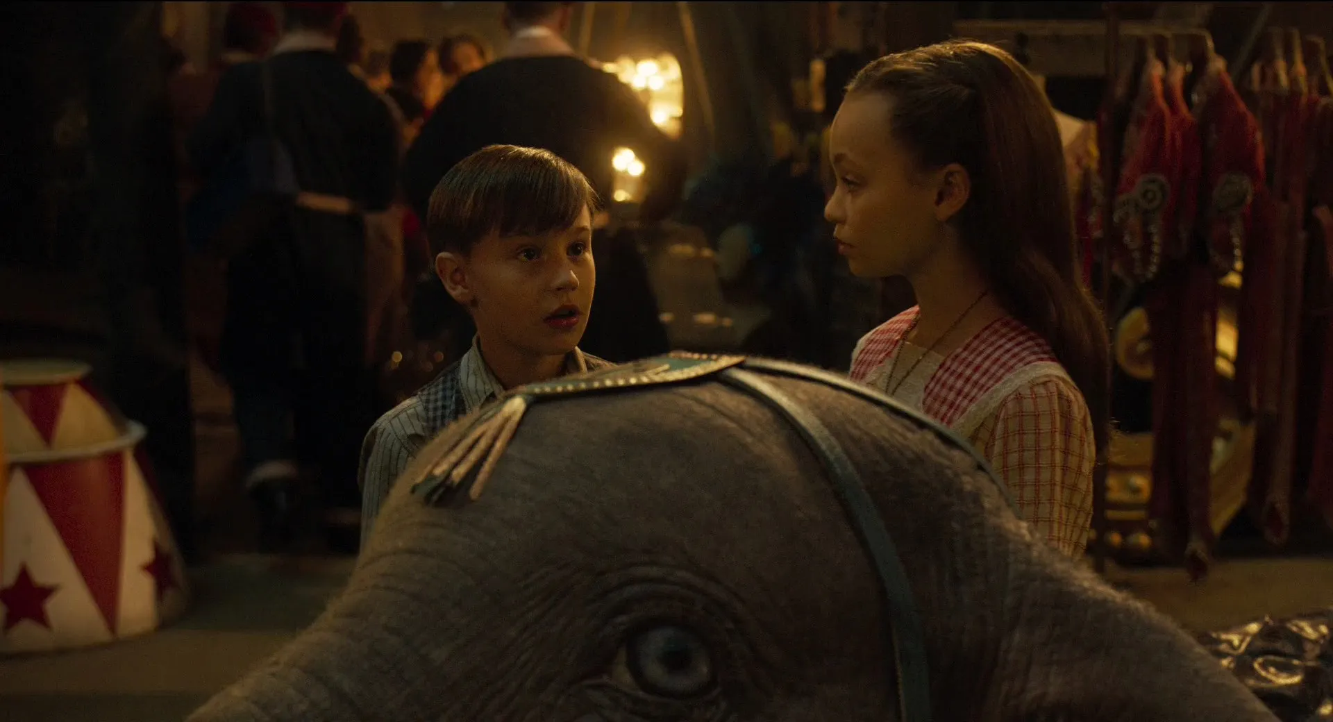# Stars Cast: Colin Farrell as Holt Farrier, Michael Keaton as V. A. Vandemere, Danny DeVito as Max Medici, Eva Green as Colette Marchant, Alan Arkin as J. Griffin Remington, Nico Parker as Milly Farrier, Finley Hobbins as Joe Farrier, Roshan Seth as Pramesh Singh, Deobia Oparei as Rongo the Strongo, Joseph Gatt as Neils Skellig, Miguel Muñoz Segura as Ivan the Wonderful, Sharon Rooney as Miss Atlantis, Zenaida Alcalde as Catherine the Greater, Michael Buffer as Baritone Bates, Phil Zimmerman as Rufus Sorghum, Ragevan Vasan as Pritam Singh, Frank Bourke as Puck the Organ Grinder, Zelda Rosset Colon as Anne Farrier, Benjamin French as Contortionist, Jana Posna as Poodle Trainer, Jo Osmond as Cook, Jewels Good as Mademoiselle Flambé, Lars Eidinger as Hans Brugelbecker, Tom Seekings as Teenager in Crowd, Douglas Reith as Sotheby, Sandy Martin as Verna the Secretary, Heather Rome as Stuffy Society Woman, Scott Haney as Rancher, Erick Hayden as Rancher, Greg Canestrari as Heckler, Chris Rogers as Heckler, Max Gill as Mean Teen, Peter Brookes as Mean Teen, Simon Connolly as Stage Manager, Nick Bartlett as Armored Truck Driver, Harry Taylor as Power Tower Guard, Vincent Andriano as Bridge Guard, Liam Bewley as Nightmare Island Guard, Ben Crowe as Dreamland Guard, Josef Davies as Dreamland Security Guard, Clive Brunt as Burly Engineer, Richard Leeming as Pipsqueak Engineer, Angela Ashton as First Maid, Alice Bonifacio as Second Maid, Philip Rosch as Reporter, Joseph Macnab as Reporters, Rob Heanley as Reporter, Amerjit Deu as Indian Ship Captain, Lucy DeVito as Coat Check Girl, Richard James-Clarke as Joplin Man, Matthew Castle as Joplin Man, Bret Jones as Joplin Man, Zee Asha as Joplin Woman, Carol Been as Joplin Woman, Jessica Barker-Wren as Joplin Woman, Arabella Neale as Woman, Rosie Akerman as Woman, Tim Southgate as Vendor, Anatoli Akerman as Clown, Kamil Lemieszewski as Circus Attendant (uncredited), Zoë Scott as Lavish Apartment Maid (uncredited), Suan-Li Ong as Fringe Girl Dancer (uncredited), Bern Collaço as Joplin Audience Member, Paul Riddell as Circus Goer (uncredited), Will Rowlands as Mr. Wilcox Customer